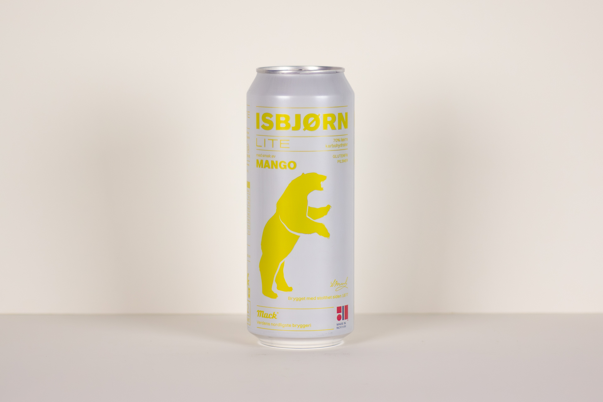 ![]() | 3 | Isbjørn Lite Mango | Macks Ølbryggeri | 4,3 % | 0,5l boks | 29 | Pils | Klar og gyllen med et lett og fint hode. Syntetisk aroma av fersken og godteri. | Godt karbonert og til dels frisk, men med tydelig syntetisk fruktsødme, sitrus og fersken. Tørr og med syntetisk sødme som henger igjen i ettersmaken. | 71 | En utypisk øl med syntetisk fruktpreg. | |