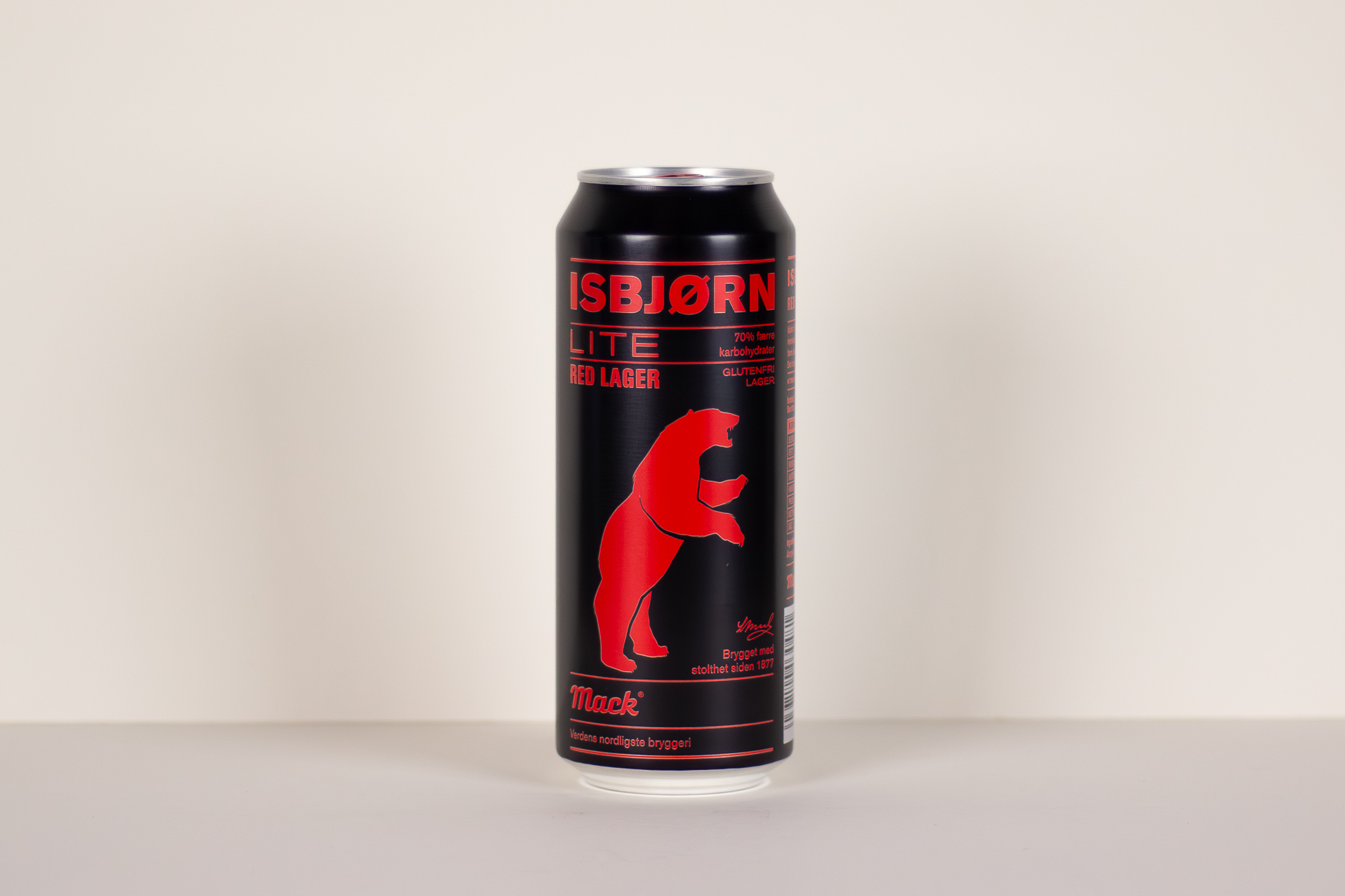 ![]() | 4 | Isbjørn Lite Red Lager | Macks Ølbryggeri | 4,5 % | 0,5l boks | 28 | Red lager | Klar og kobberfarget med lett skum. Duft av karamell, toast og tørket frukt. | Rund og lett smak av toast, brent karamell, mandler og kakebunn. Balansert med enkel og kort ettersmak. | 82 | En enkel red lager med fint maltpreg. | |
